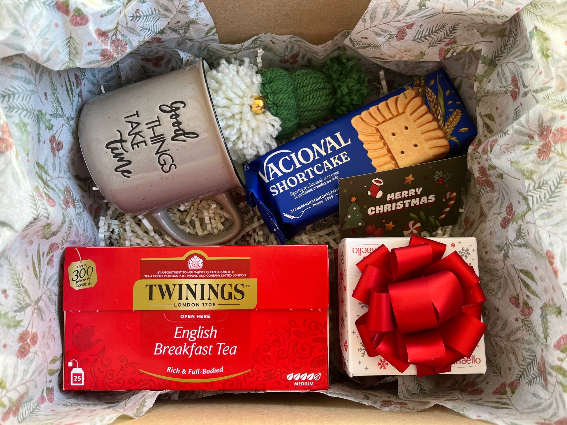 Cada cabaz vem preparado à mão, com direito a cheirinho a gingerbread, Pai Natal de lã feito à mão e raspadinha com mensagem secreta personalizada.